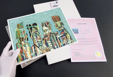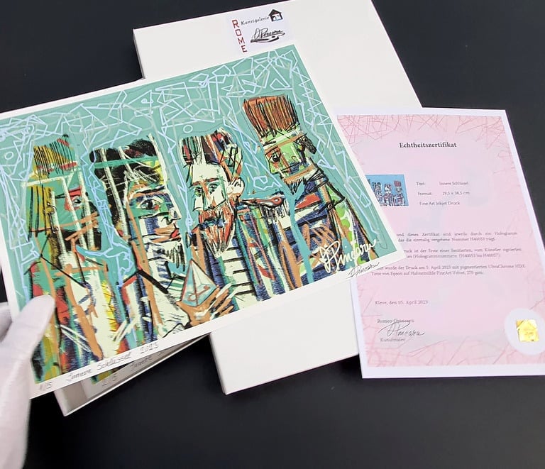 Alle Originale und limitierten Drucke werden mit Echtheitszertifikat, Hologramm und individueller Codenummer geliefert - für maximale Sicherheit und Authentizität.