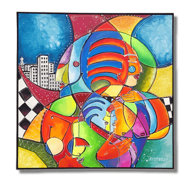 Technik: Acryl auf Leinwand, handbemalter Sonderrahmen (Werkbestandteil)