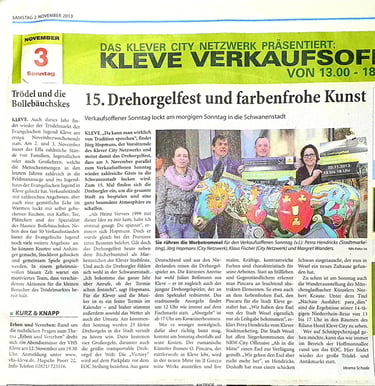 2013 – Ausstellungen/Live-Events u. a. Smidt Leverkusen, FINKE Münster/Kassel · Eselausstellung – 12. Weseler Kulturnacht · Experiment KUNSTspur – Rathaus Kleve